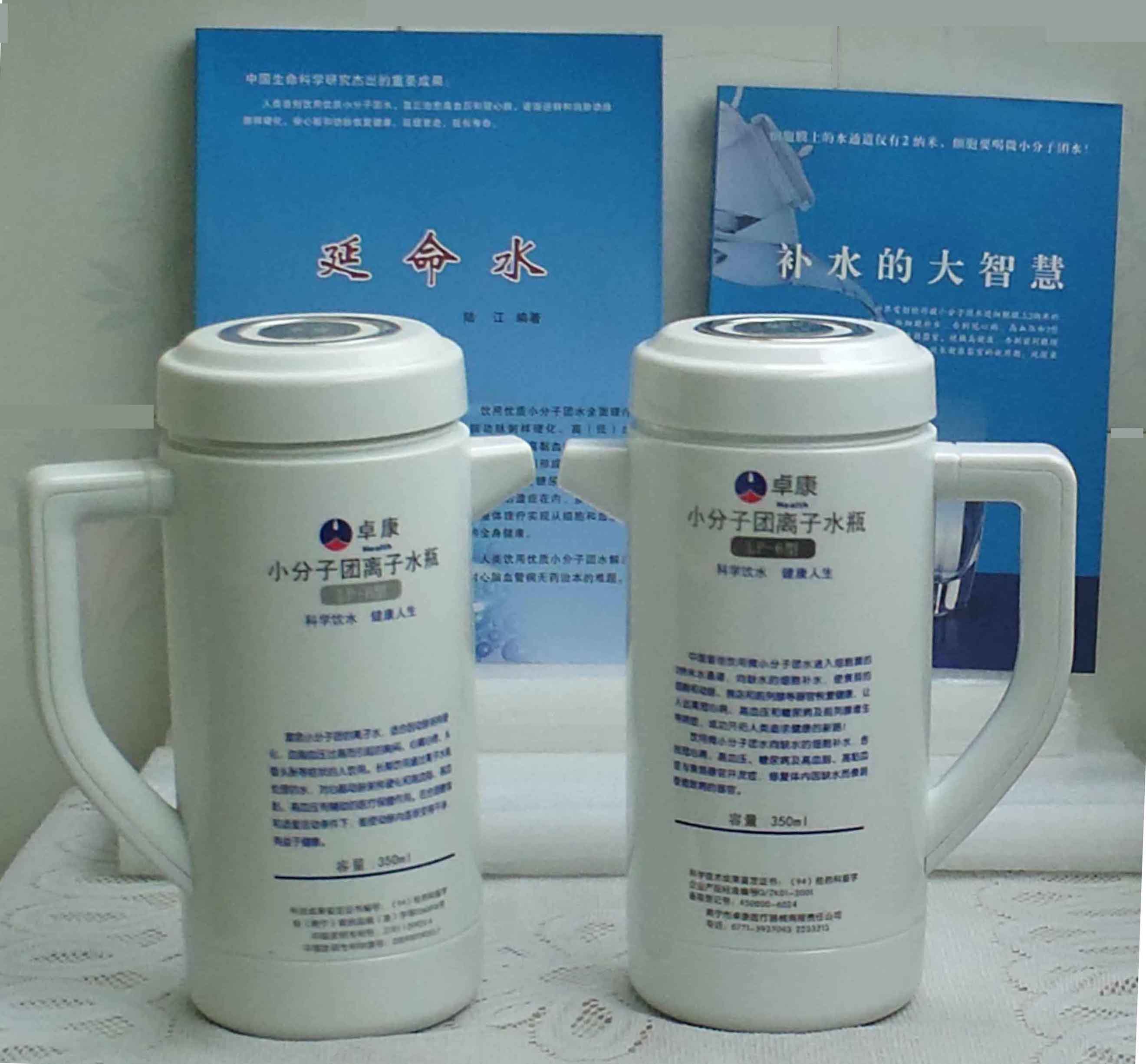 本品大量用戶的使用效果表明,能治愈冠心病、腦動(dòng)脈硬化、原發(fā)性高(低)血壓、高血脂、高粘血癥、高血尿酸癥(痛風(fēng))和2型糖尿病、衰弱器官并發(fā)癥(前列腺增生、腎衰與尿毒癥)及中風(fēng)后遺癥等療效好。產(chǎn)品配信譽(yù)卡。使用壽命30年,不換芯,易清洗。團(tuán)購(gòu)優(yōu)惠。從郵局匯款,匯費(fèi)1%,地址按本頁(yè)下方地址、聯(lián)系人寫。從銀行匯款,請(qǐng)點(diǎn)擊[聯(lián)系匯款]欄,從工商銀行匯款,建設(shè)銀行、農(nóng)業(yè)銀行匯款,均免收匯費(fèi),匯款后20--30分鐘內(nèi)發(fā)短信,可用微信轉(zhuǎn)帳,均免匯費(fèi),微信號(hào)即手機(jī)號(hào)13768308380。匯款后,告知你的姓名和地址,我公司聯(lián)系人手機(jī)號(hào)是:13768308380卓康牌離子水瓶為我公司獨(dú)家生產(chǎn),郵購(gòu)產(chǎn)品配《補(bǔ)水的大智慧》彩印書一本,另配四季出版社出版的新書《補(bǔ)水的大智慧》一本,并配光盤一張(含央視主持人釆訪陸江的對(duì)話視頻)。目前市場(chǎng)和"淘寶網(wǎng)"上有人兜售假冒的偽品,望讀者審察辯別真?zhèn)危旒僬哓飧`假冒本公司的各種認(rèn)證、獲獎(jiǎng)獎(jiǎng)項(xiàng)、專利號(hào)和外包裝盒上的中英文字,包括科技成果的鑒定意見等,請(qǐng)讀者注意防偽。如何識(shí)別假貨?已經(jīng)買了假貨怎么辦?(請(qǐng)點(diǎn)擊[打假掠影][打假掠影])。